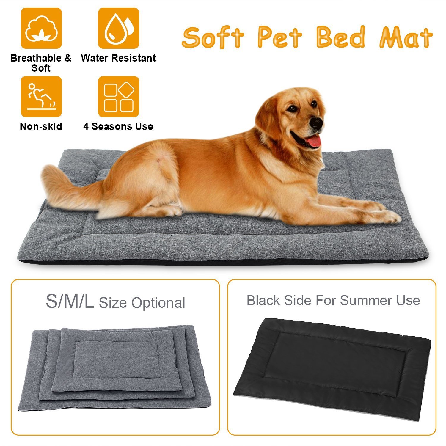**S/M/L SIZE OPTIONAL*:S/M/L Size meets the demand for small medium large dogs and every stage of a dog's life(whelping,growing,adult or elder). Can be used as a sleeping mattress,travel pets pad,pet pillow,floor dog mat
