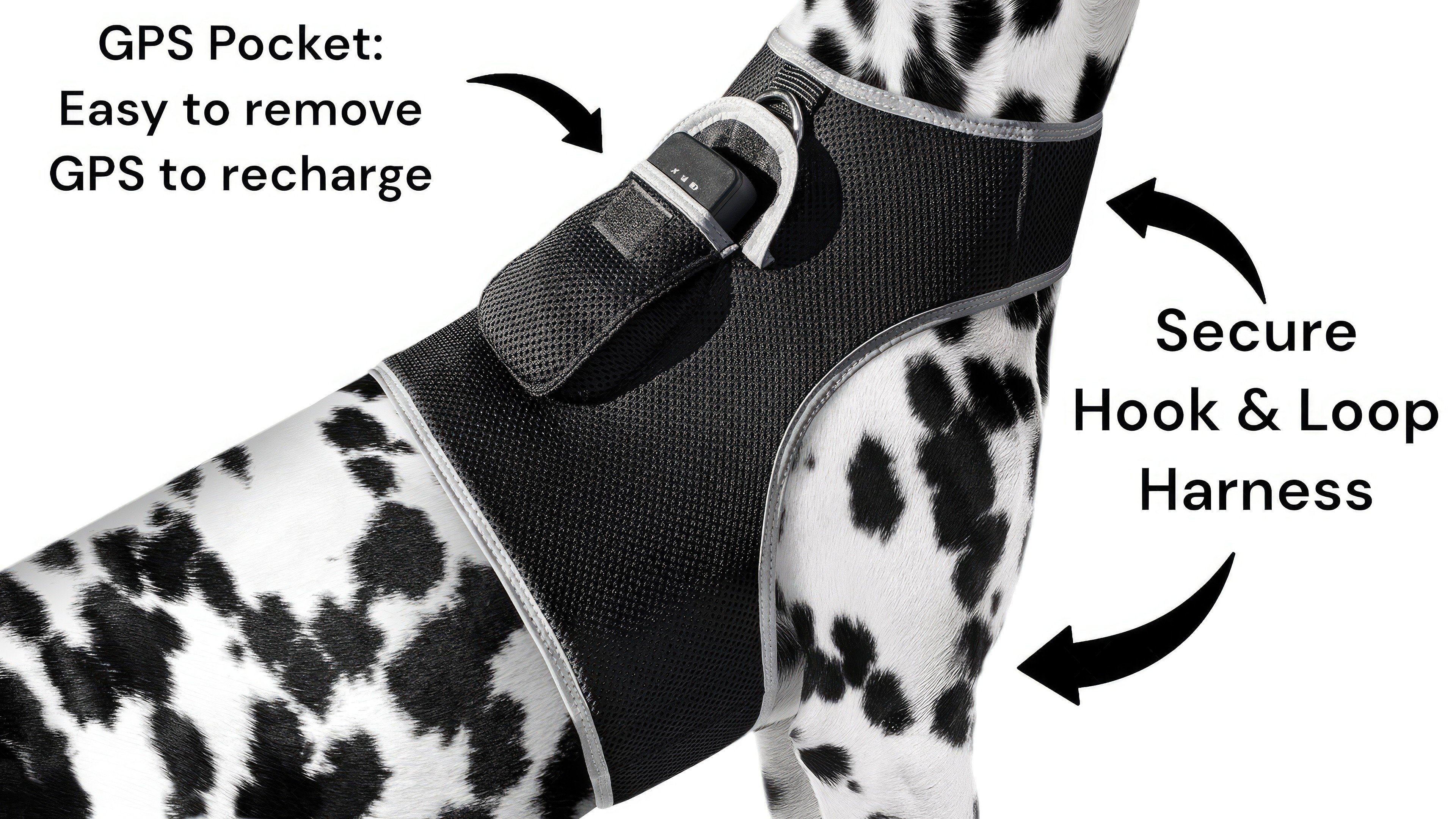 We dont believe in heavy GPS Tracking neck collars. Our mesh harness was designed with your pets comfort in mind first, we made sure our harness exceeded fitment comfort under the legs, neck, back, and waist. Then we did several real life use case tests to ensure the weight is evenly distributed whether Fido or Lucy was laying, sitting, playing, eating, drinking, walking, or running. We found little to no disturbance in their normal daily acivities when comparing to standard collars. Furthermore, positioning the GPS device on the upper body allows for Optimal GPS Reception for perfect accuracy at all times. Keep and leash to your existing collar or use the harness ring.